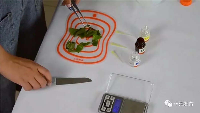 检测历程也十分简便:只要称取2.0g样品(约1cm见方)放入样品杯中,加入显色剂,静置10分钟后即可视察到结果。